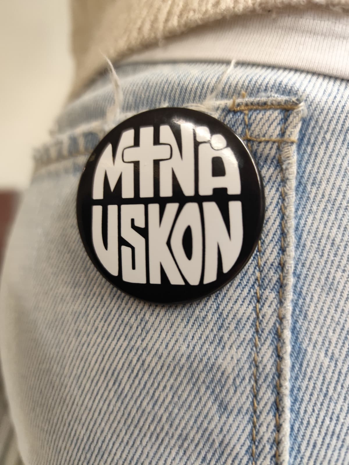 Kannatus rintamerkki! 45mm halkaisija. Helppo tapa ”näyttää” uskoa ja tukea evankeliumin työtä!